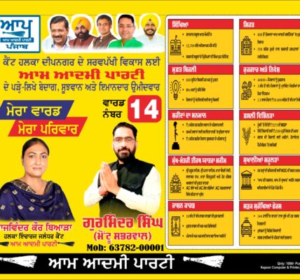 (एस.के कुलदीप – हैल्लो जालंधर – जालंधर कैंट) आम आदमी पार्टी सरकार ने पक्षपात के कारण आदमपुर के विकास को नजरअंदाज किया जालंधर/आदमपुर जालंधर लोकसभा क्षेत्र का सर्वपक्षीय विकास करना और कांग्रेस पार्टी द्वारा दी गई गारंटी का लाभ दिलवाना मेरी जिम्मेदारी है।