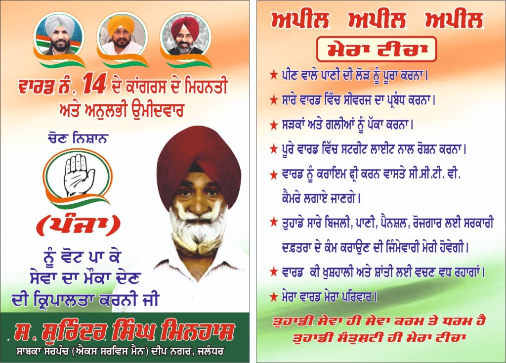 वार्ड नंबर 14 से समझदार और अनुभवी उम्मीदवार सुरेंद्र सिंह मिन्हास जिन्होंने जारी किया अपना चुनाव मेनिफेस्टो।